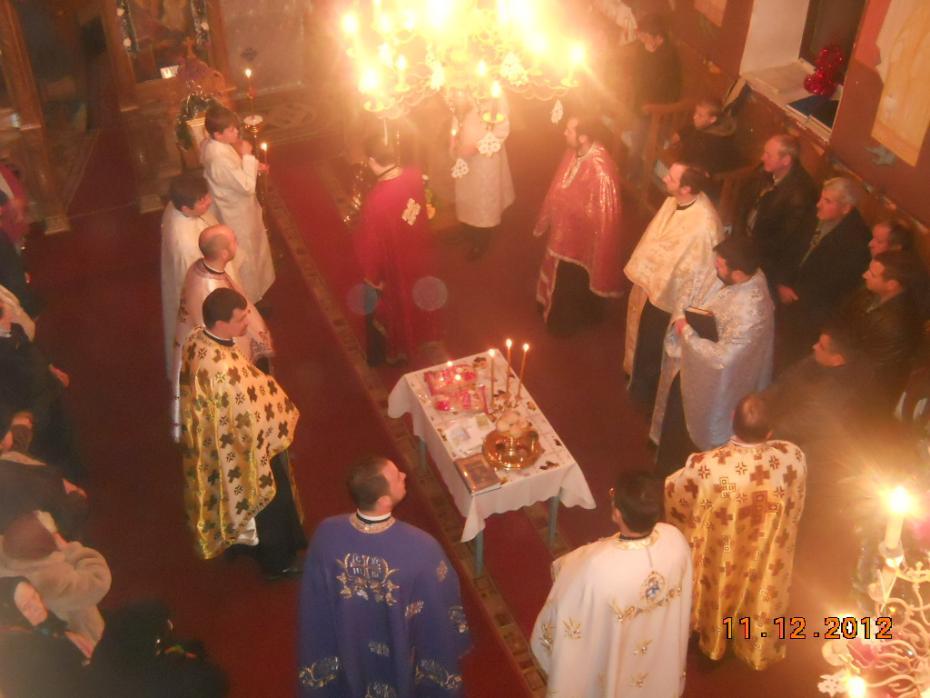 Cu ajutorul lui Dumnezeu s-a săvârşit în biserica noastră slujba Vecerniei şi a Litiei în cinstea patronului nostru spiritual - Sfântul Ierarh Spiridon.